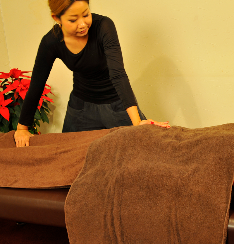 By loosening tense muscles caused by the accumulated fatigue of daily life, blood flow is promoted and various ailments can be expected to be alleviated. At our salon, treatments are performed by our therapists using all their hands, allowing us to flexibly adjust the treatment to suit the condition of the person receiving it. We can sensitively sense the customer's condition through our hands and adjust the strength to suit the customer.