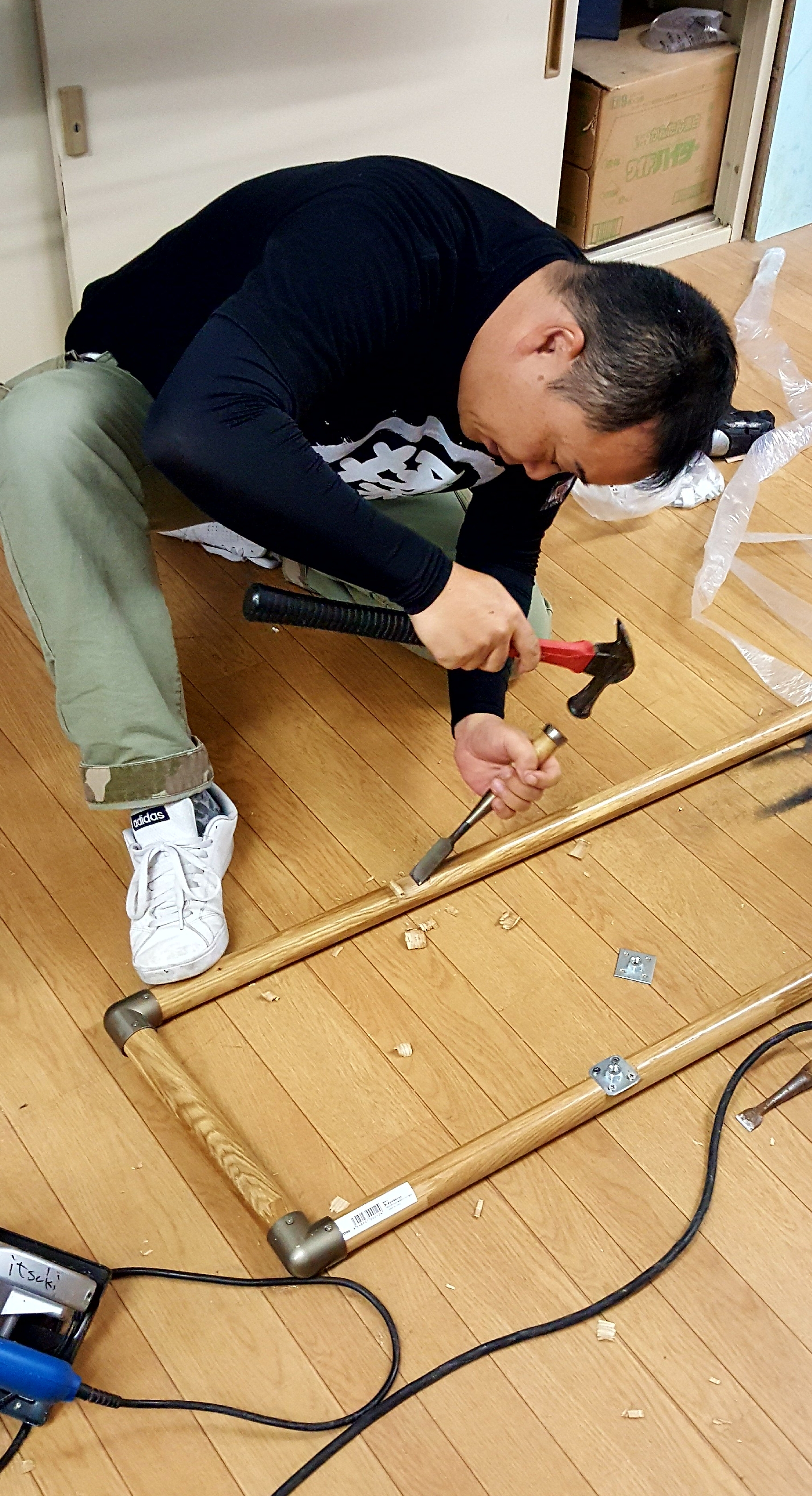 The manager is making handrails to attach to the ceiling today. Apparently they make anything they can! (゚□゚) That's amazing lol